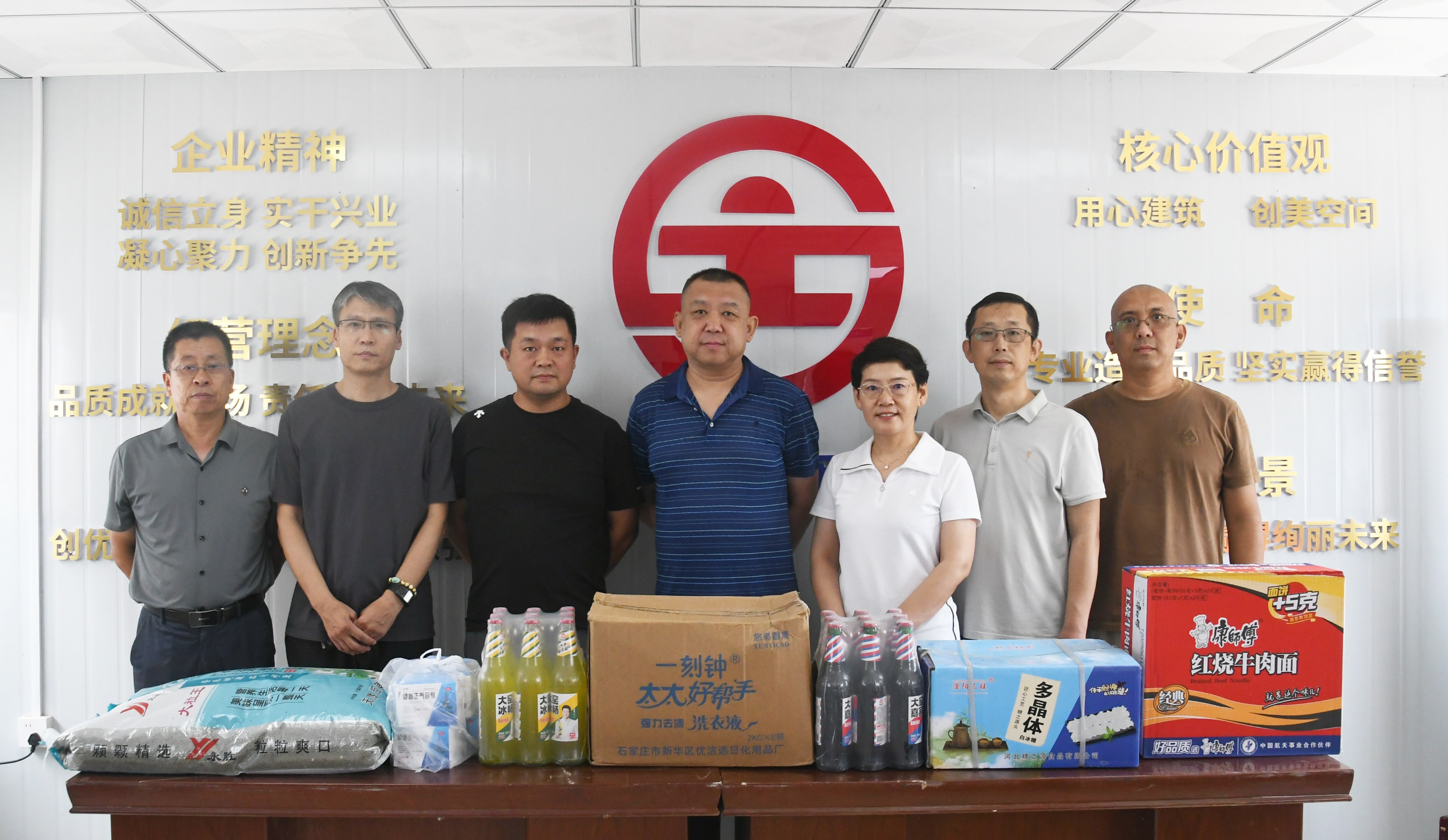 慰問組在項(xiàng)目現(xiàn)場(chǎng)認(rèn)真聽取了項(xiàng)目人員關(guān)于工程進(jìn)展、高溫作業(yè)安全保障及文明施工等情況的匯報(bào),并詳細(xì)詢問一線職工工作狀態(tài),對(duì)他們?cè)诟邷靥鞖庀聢?jiān)守崗位、履職盡責(zé)的奉獻(xiàn)精神給予高度肯定。隨后,慰問組向職工發(fā)放了綠豆、藿香正氣水、飲料、洗衣液等防暑降溫及洗護(hù)用品,將集團(tuán)關(guān)懷精準(zhǔn)傳遞至施工最前沿。