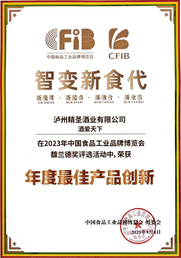 瀘州精圣酒業(yè)有限公司出品的“精圣”牌酒愛天下·禮品酒,具有諸香渾然添陳、內(nèi)斂渾厚飽滿、韻味甘綿雅凈,聞著香、喝著順、飲后心曠神怡的內(nèi)在品質(zhì),以及銀裝素雅剔透、生態(tài)玉白韻綠的外在裝潢,在此次展會(huì)中以其“蓋世酒仙、內(nèi)外兼修”的產(chǎn)品魅力優(yōu)勢(shì)脫穎而出,獲得馥蘭德獎(jiǎng)2023年度產(chǎn)品創(chuàng)新獎(jiǎng)。